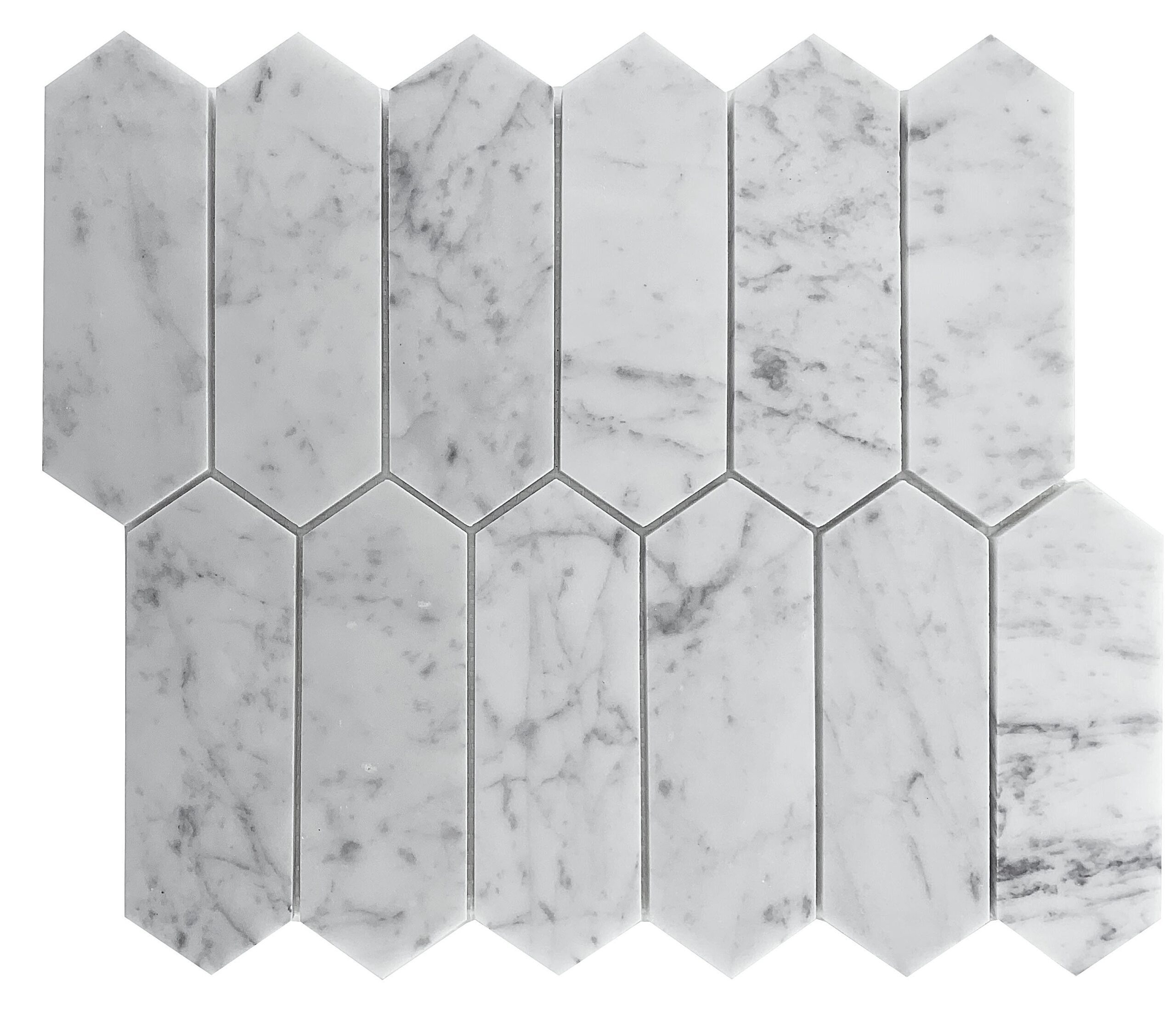 LONG HEX CARRARA HONED CHIP SIZE 50X150X7MM SHEET SIZE 270X310 11.94 SHEETS/M2 10SHEETS(0.84M2)/BOX